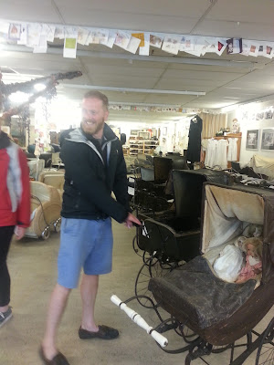 We looked at a couple of museums; the picture shows William admiring one of the exhibits in the pram museum (free entry, donations welcome).